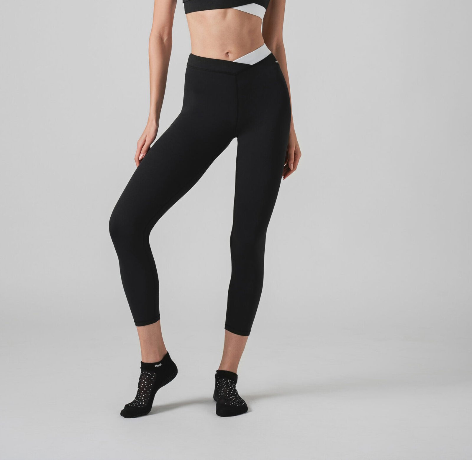 - Signature V-cut crossover waistband for a lengthening, sculpted look